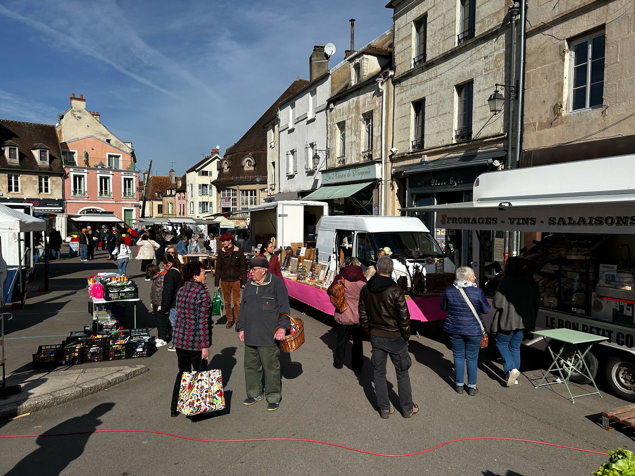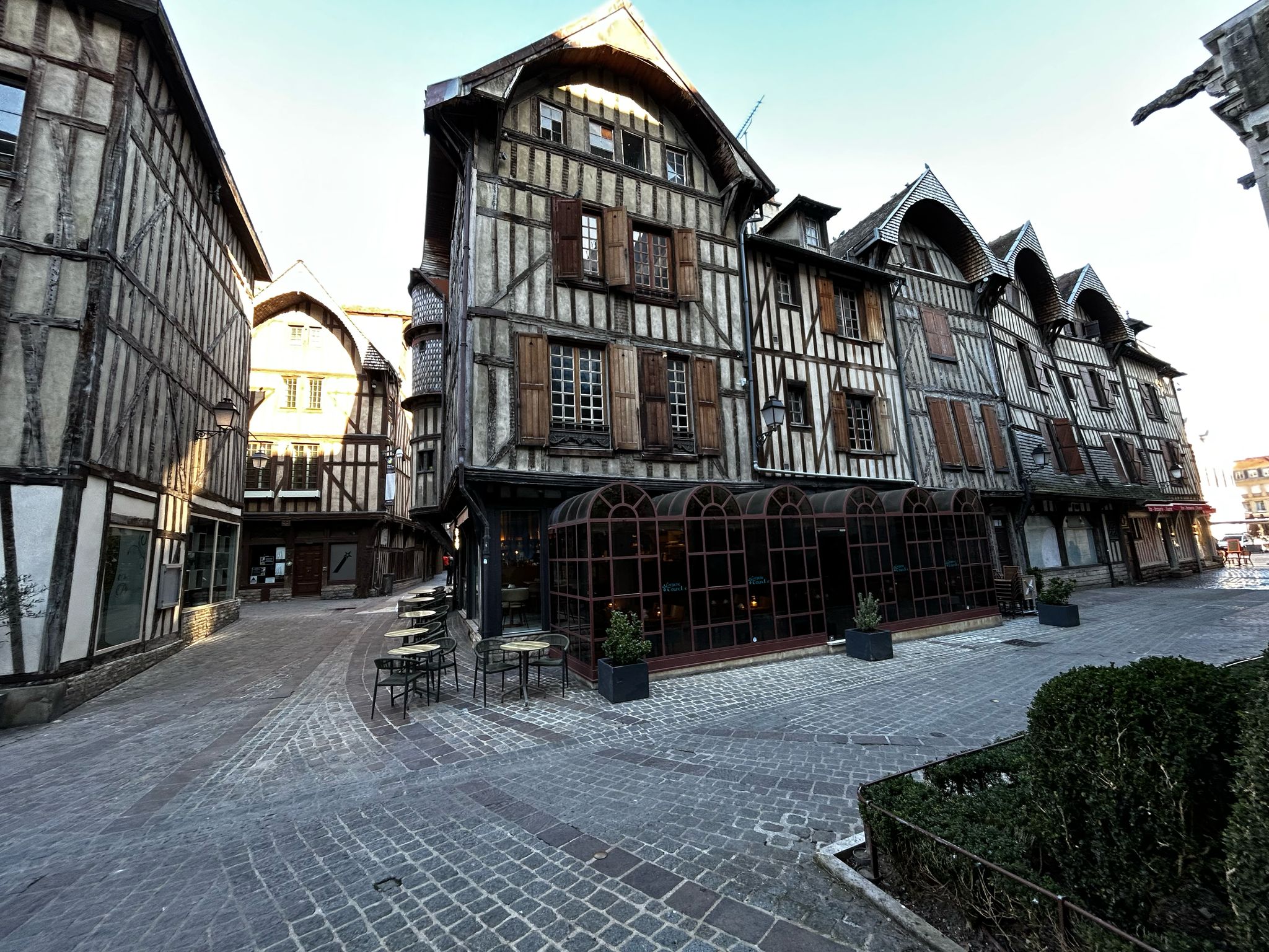 Onze dag begon met Suzan’s favoriete bezigheid: eten. En waar kun je dat beter doen dan op de overdekte markt van Troyes? Wat een fantastische plek! Lokale specialiteiten, verse producten en een sfeer om van te smullen. Troyes zelf verraste ons: charmante vakwerkhuizen, een heerlijk zonnetje en een kathedraal die zeker niet onderdoet voor die in Italië – een van de mooiste die we tot nu toe gezien hebben.