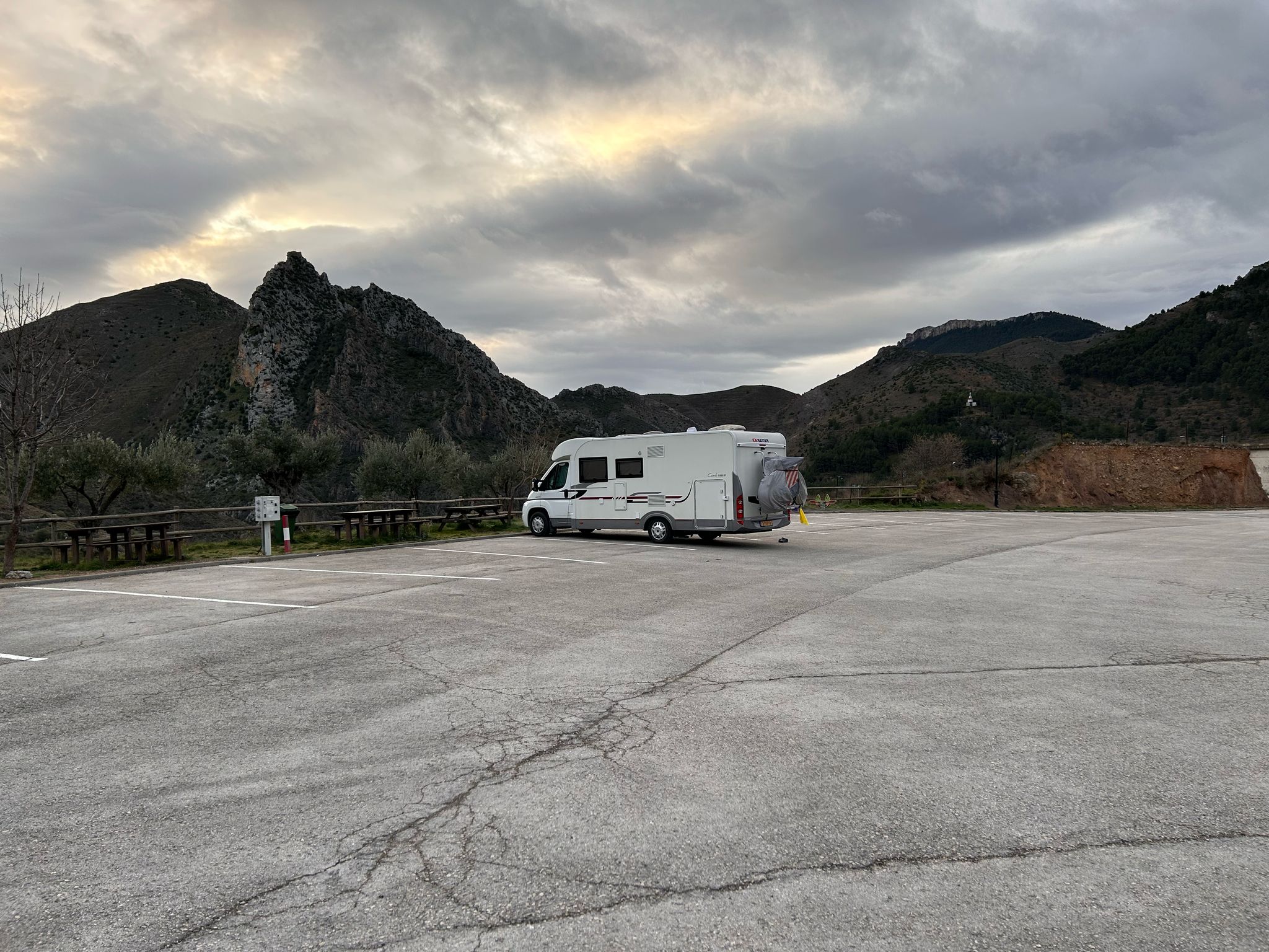 Omdat het koud was en en 5 dagen regen was voorspeld zijn we woensdag naar Spanje doorgereden om daar in Peñafiel witte donderdag en de tocht naar de kruisberg vanochtend vroeg te bekijken. De processies waren echt heel indrukwekkend. Omdat het weer tussen Zaragoza en de Middellandse Zee er aankomende dagen veel beter uitziet rijden we nog een stukkie door.