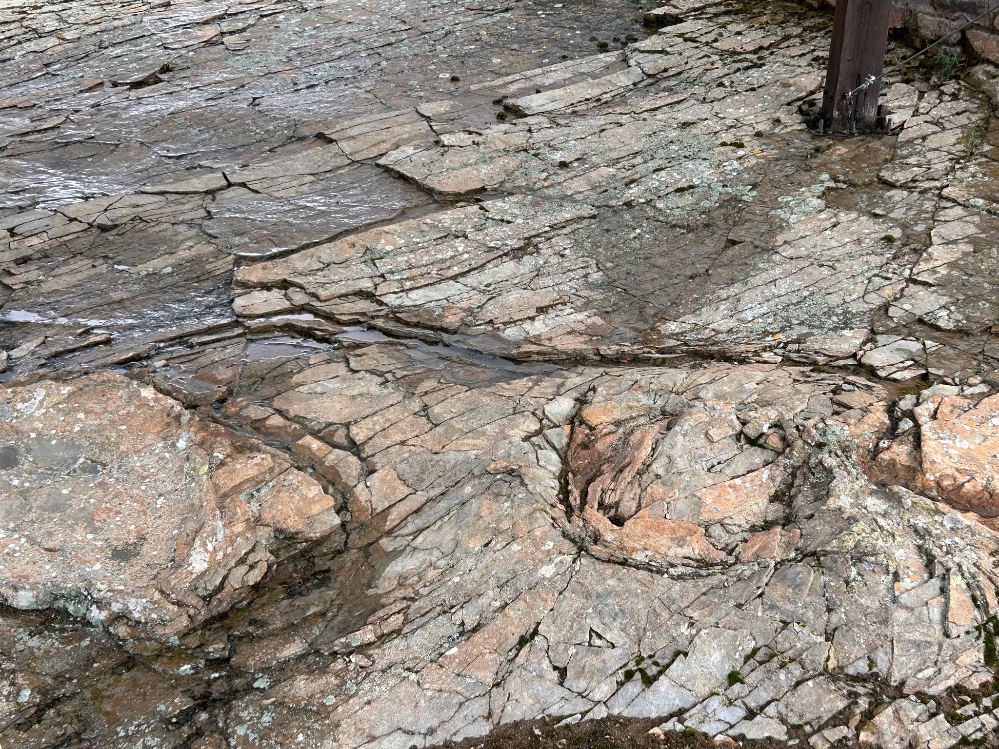 Nadat we de camper weer hebben geleegd en gevuld zijn we de kloof doorgereden naar de ‘dinosporenroute’. In het gebied zijn veel voetafdrukken van dinosaurussen gevonden en echt duidelijk zichtbaar. Best apart dag je iets staat te bekijken dat letterlijk 130 miljoen jaar geleden is gemaakt.
