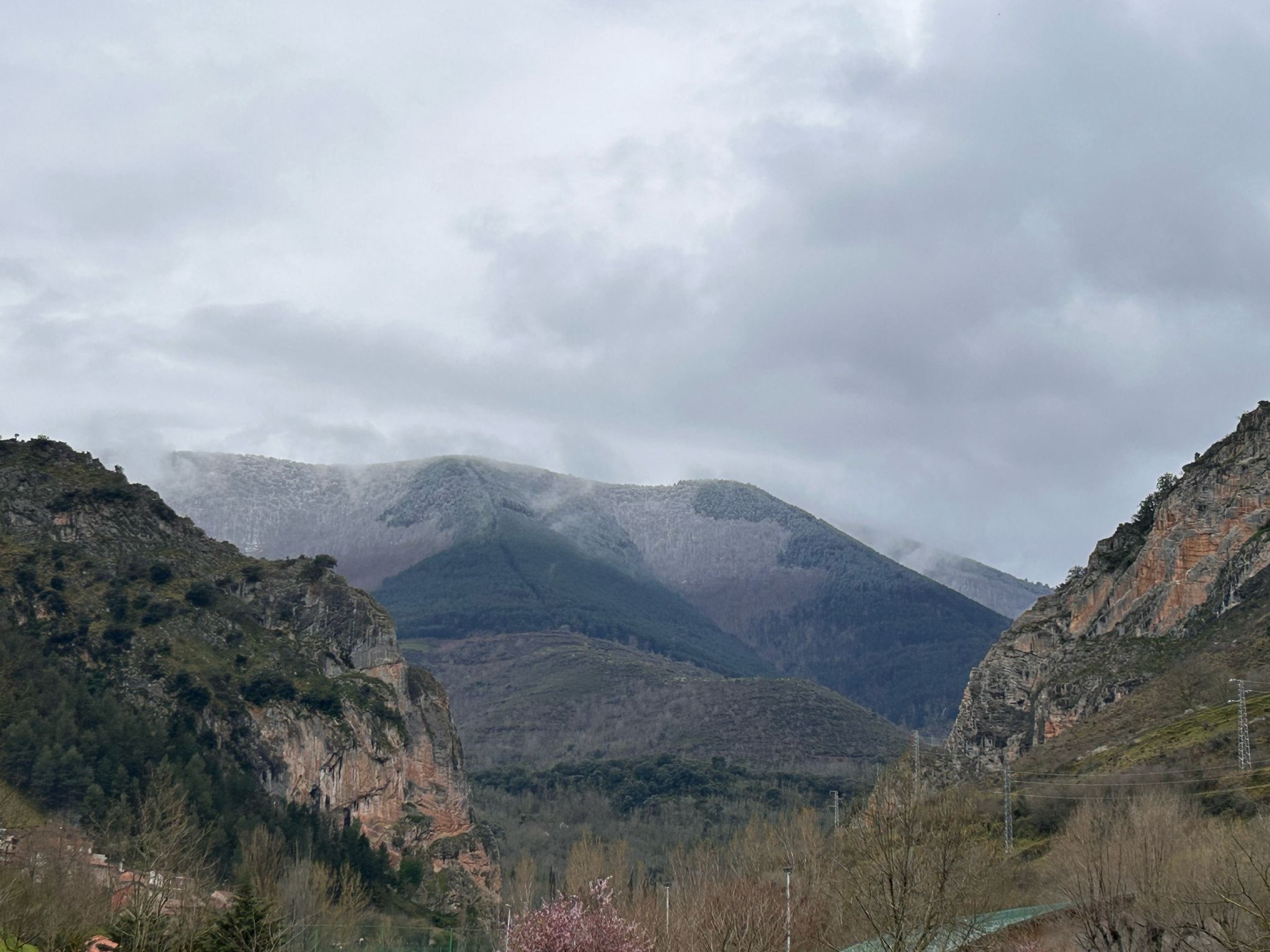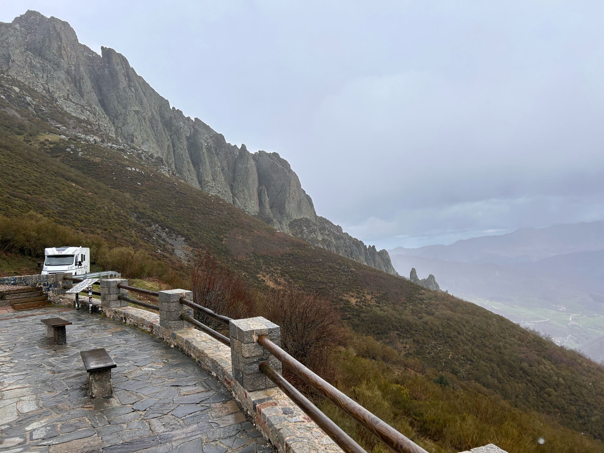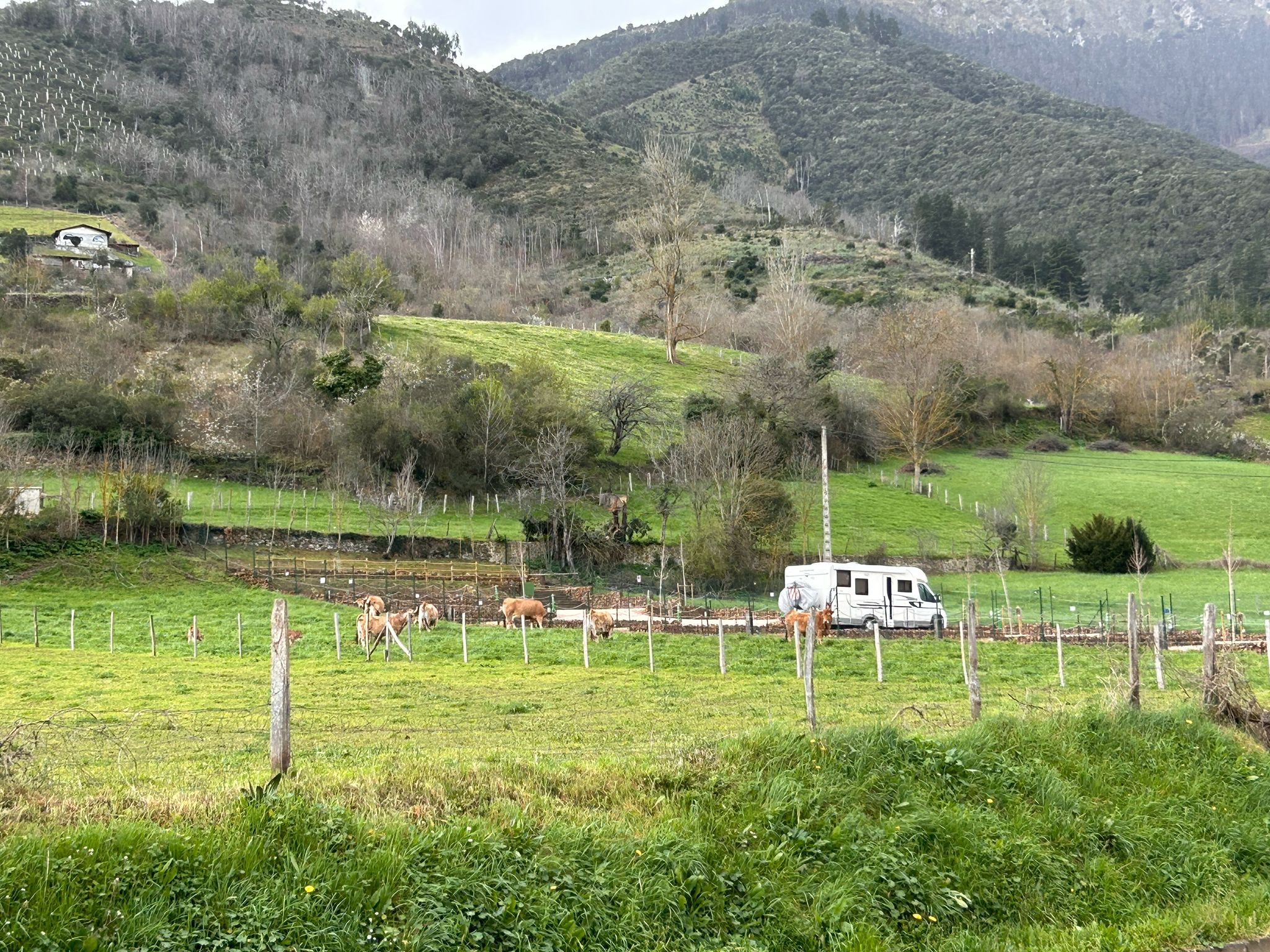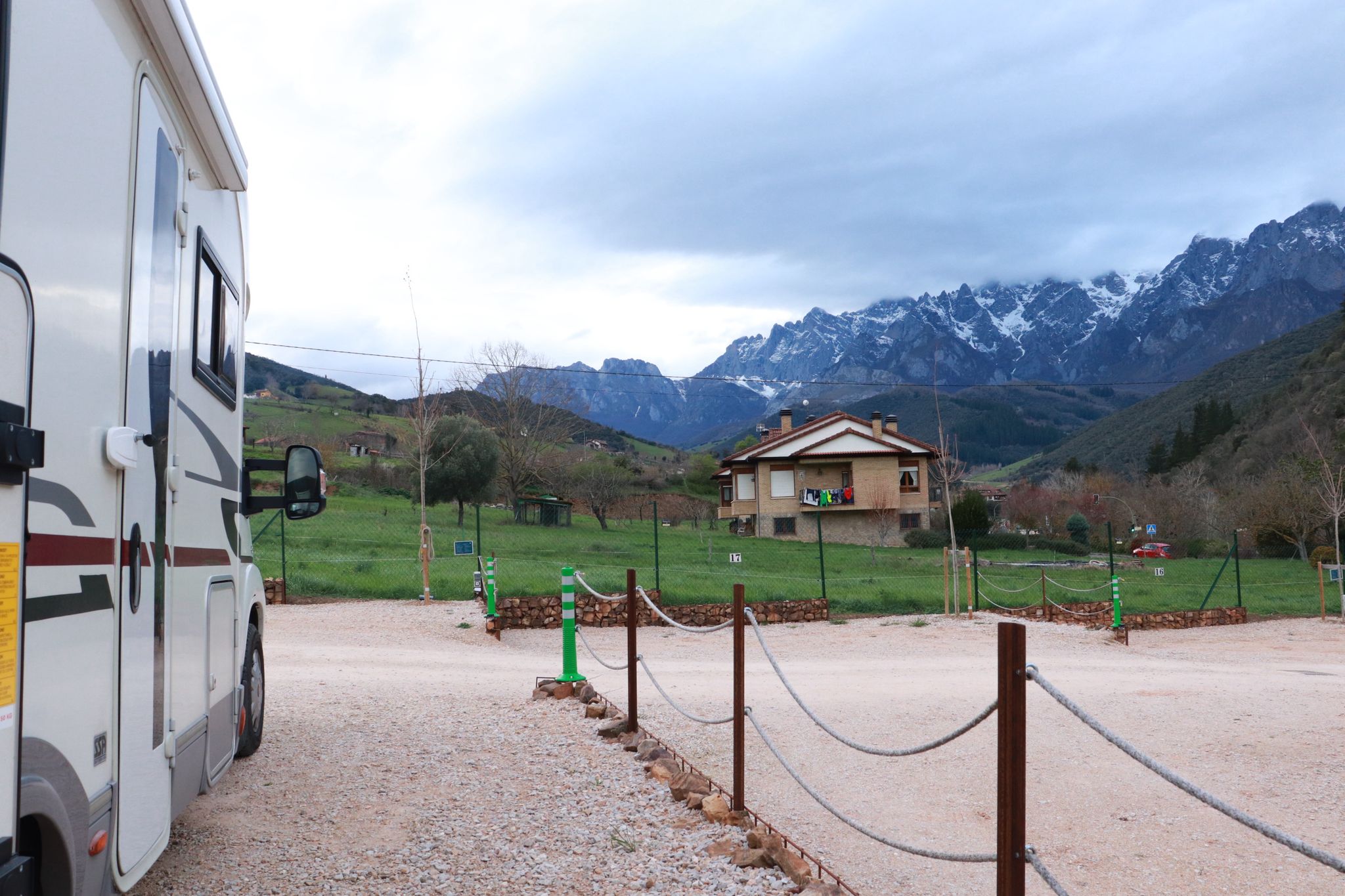 De route door de kloof naar Potes was easy peasy, de weg wordt verbreed naar een prima tweebaansweg👍. Vanaf onze camperplaats kijken we op een paar van de hoge bergen hier.