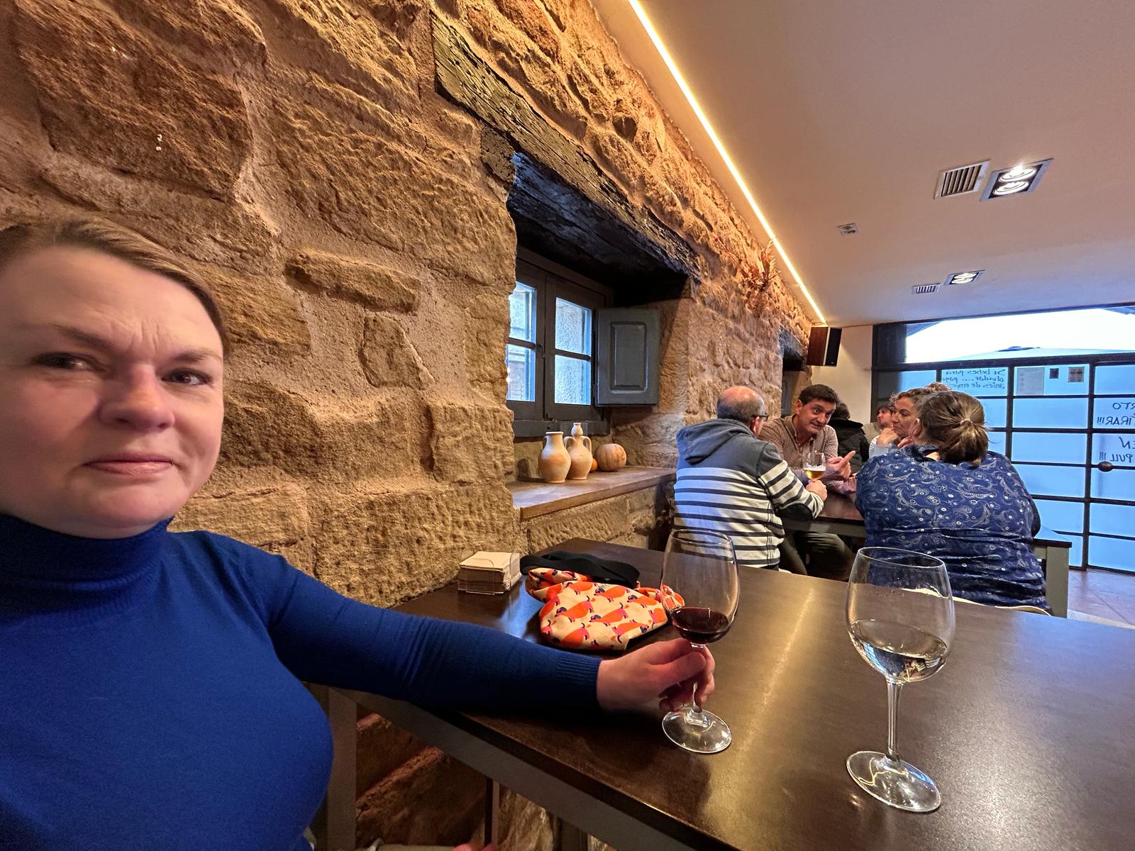 Vervolgens op zoek naar een bar waar wel mensen zijn. Het is namelijk stil in de dorpjes, heel stil. In de bar waar veel locals komen in gesprek gekomen met een stel uit Londen dat voor een wijnbedrijf werkt en een spaanse die werkt als wijngids en fixer voor bedrijven zoals zij die wijn inkopen en wijntours organiseren. Zo hebben we weer meer geleerd hoe de wijnbusiness een beetje in elkaar zit en gaan we morgen een wijntour doen.