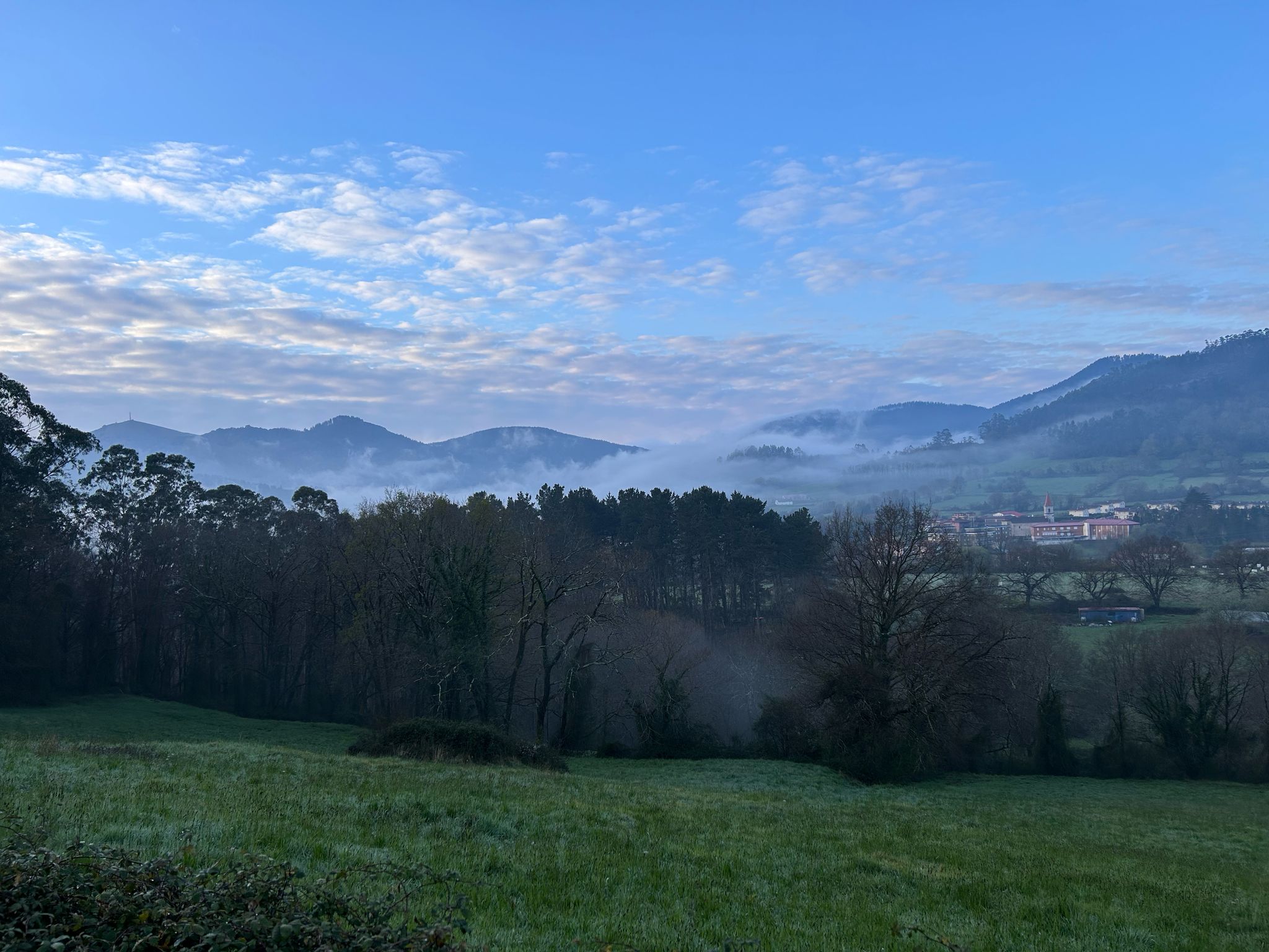 Een terugblik op dinsdag en vandaag. Gelukkig hebben wij geen last van het noodweer wat in de nederlandse kranten wordt genoemd. Dat zit in Portugal en zuidelijker Spanje. Wij zijn gisteren begonnen 40 km ten zuidoosten van Santander met alweer een mooie zonsopkomst en mooie plaatjes van de 2 massieven waar het dorpje onder lag.