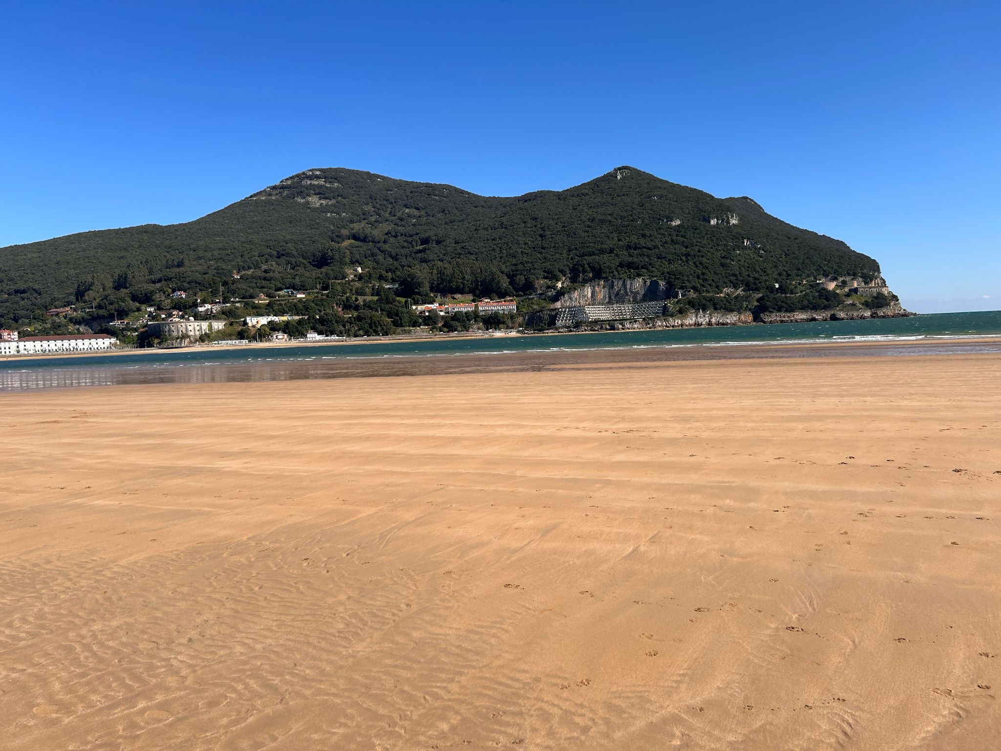 Vandaag weer met een mooie zonsopkomst begonnen bij een mooie wandeling . De wolken en mistbanken lagen heel mooi tegen de hellingen aan. Na het werk van het weekend weggewerkt te hebben zijn we afgedaald naar de zee en naar Laredo gereden, want er was zon en daardoor wind voorspeld.