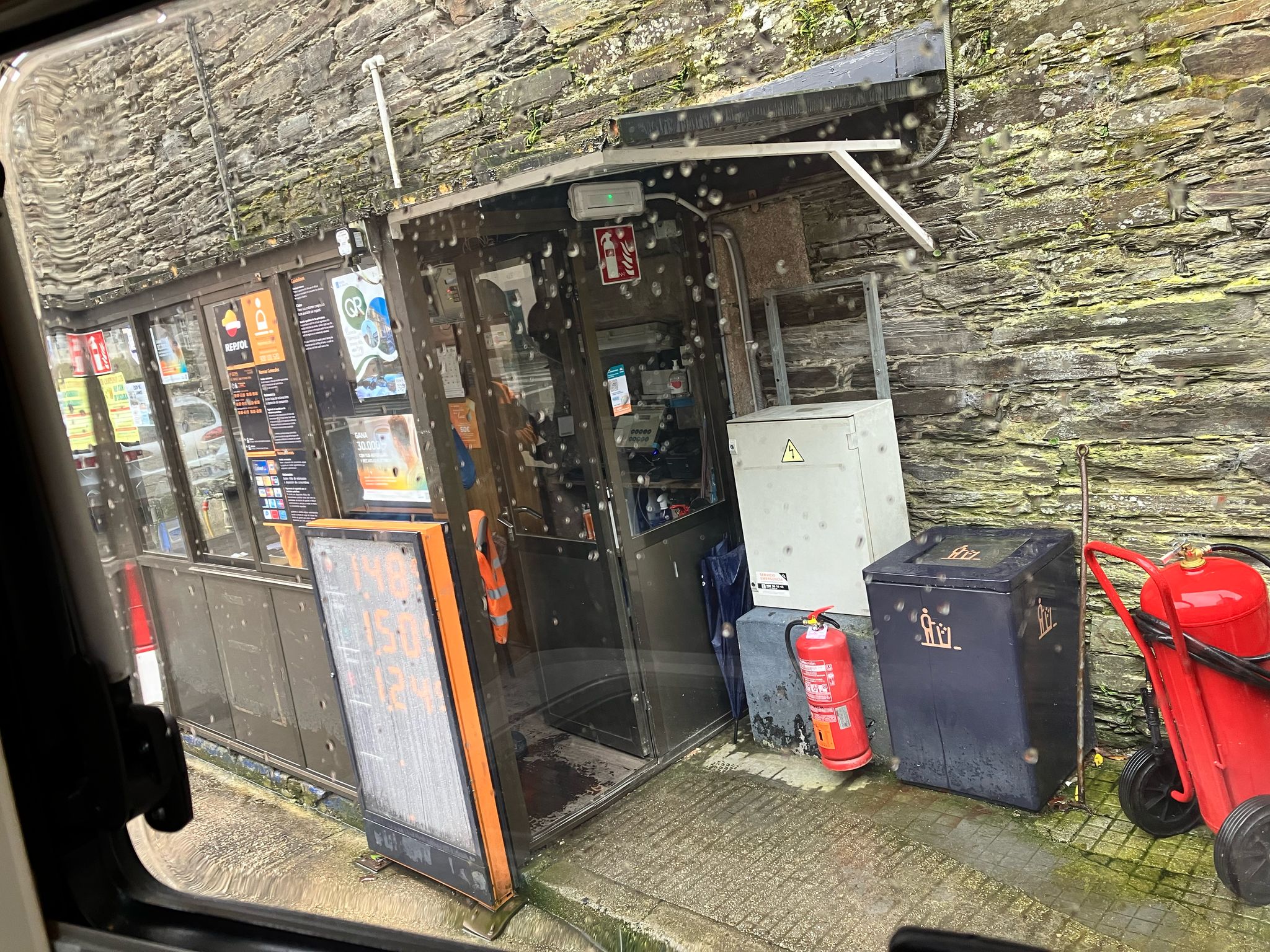 We hebben een tussenstop gemaakt in Aviles wat verrassend mooi was; ook in de regen met veel barretjes onder togen. Daarna doorgereden naar de Ribeira waar we zondag etappe plaatsen van Camino de Compostella bezochten met schitterende kloosters. Waar maak je nog mee dat je auto wordt getankt?