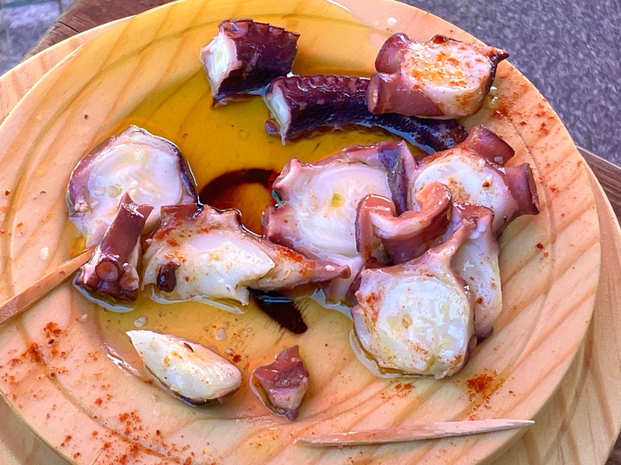 We hebben nog een dag in Ribadavia gestaan om de voorjaarsmarkt te bezoeken. Altijd leuk om te zien hoe de streek daarvoor uitloopt en te zien wat hun lekkernijen zijn. Dat was hier vers bereide pulpo: 🐙. Erg lekker: smaakt beetje als St.-jakobsschelp met een stevigheid van verse kippendij. Verder heerlijke empanada’s en lekkere jonge kaas gescoord.