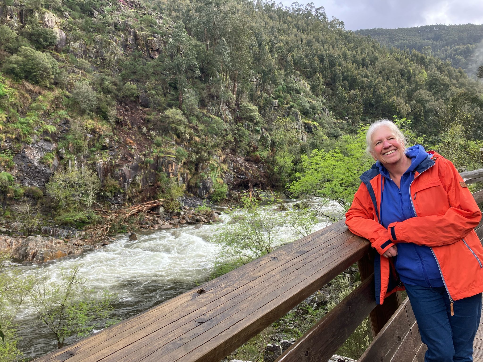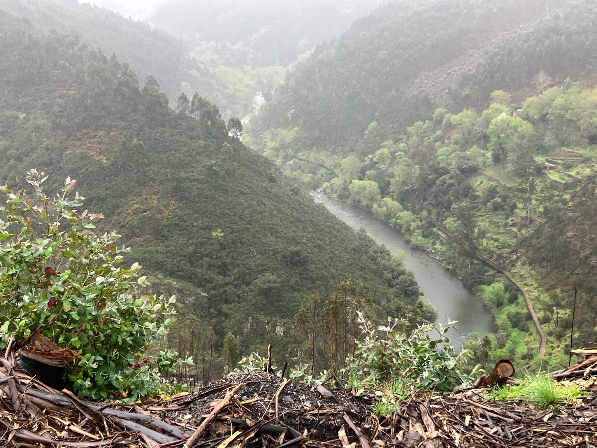 Dan maar koffie voordat het weer om zou slaan. We zijn via de Douro vallei, beroemd om de herkomst van de Porto druiven, naar het Arouca geopark gereden. Het eindigde in stromende regen met de sfeer van ‘gevaarlijkste wegen’ door gebieden waar afgelopen jaar hele heftige bosbranden zijn geweest.