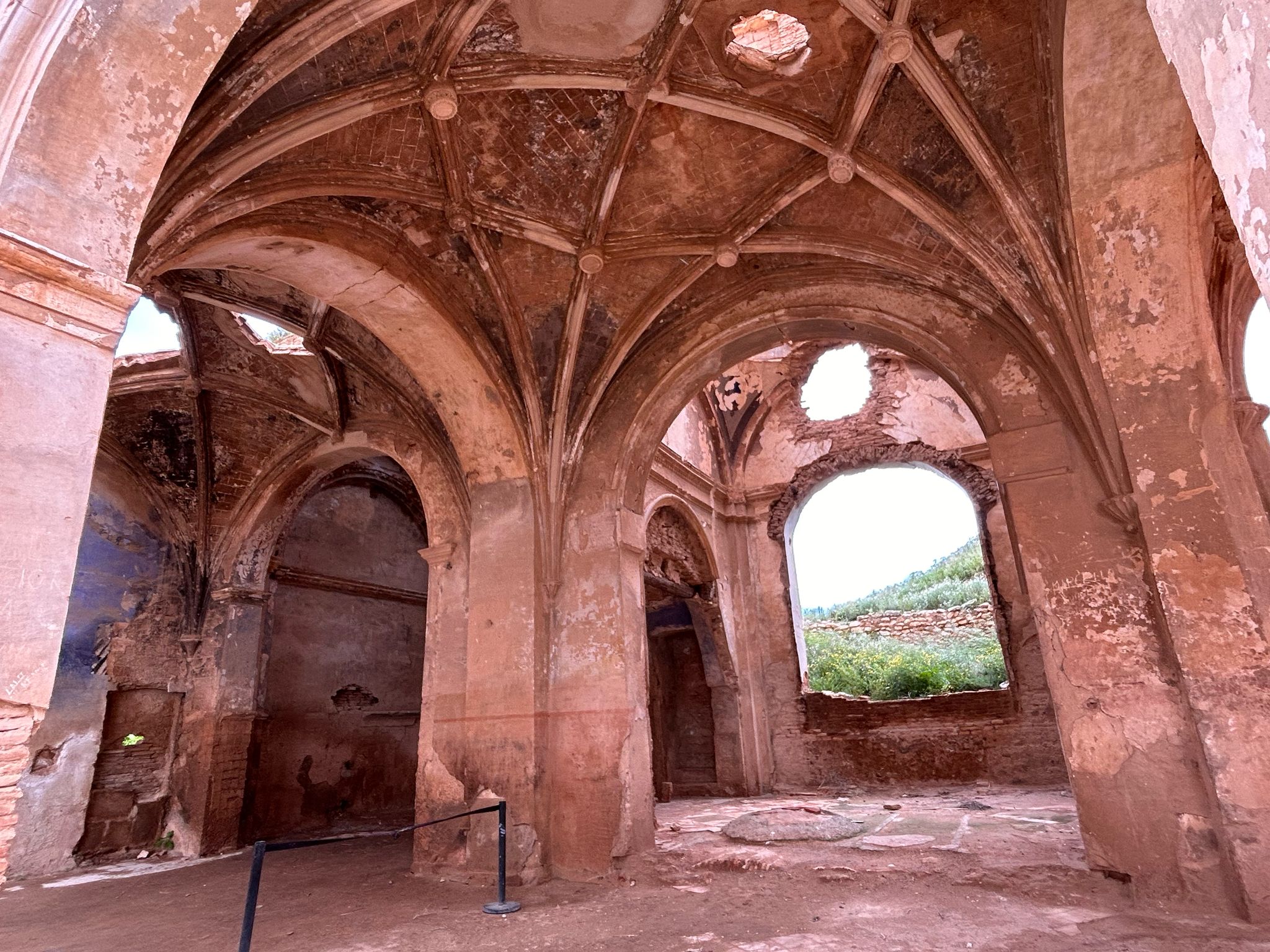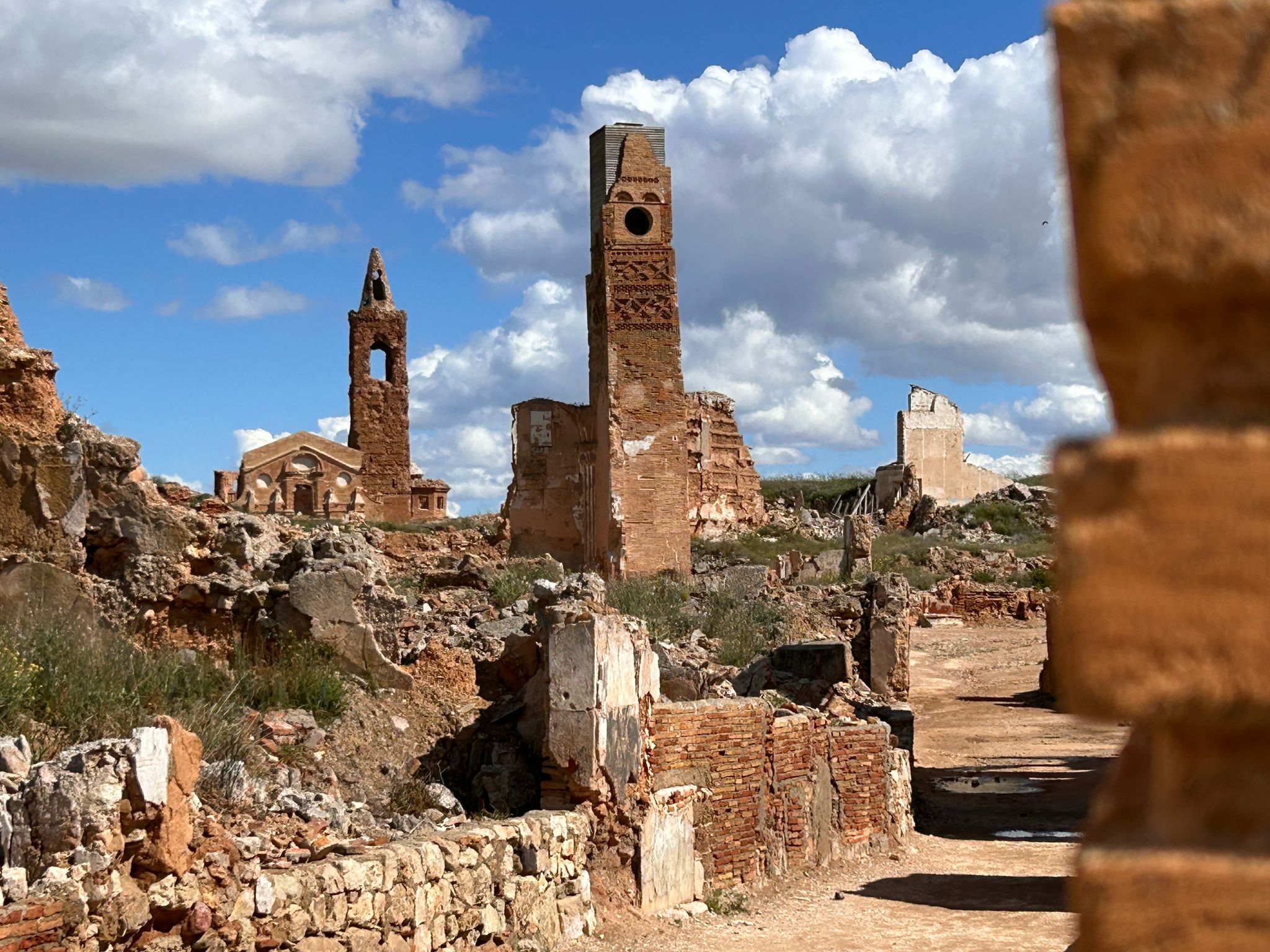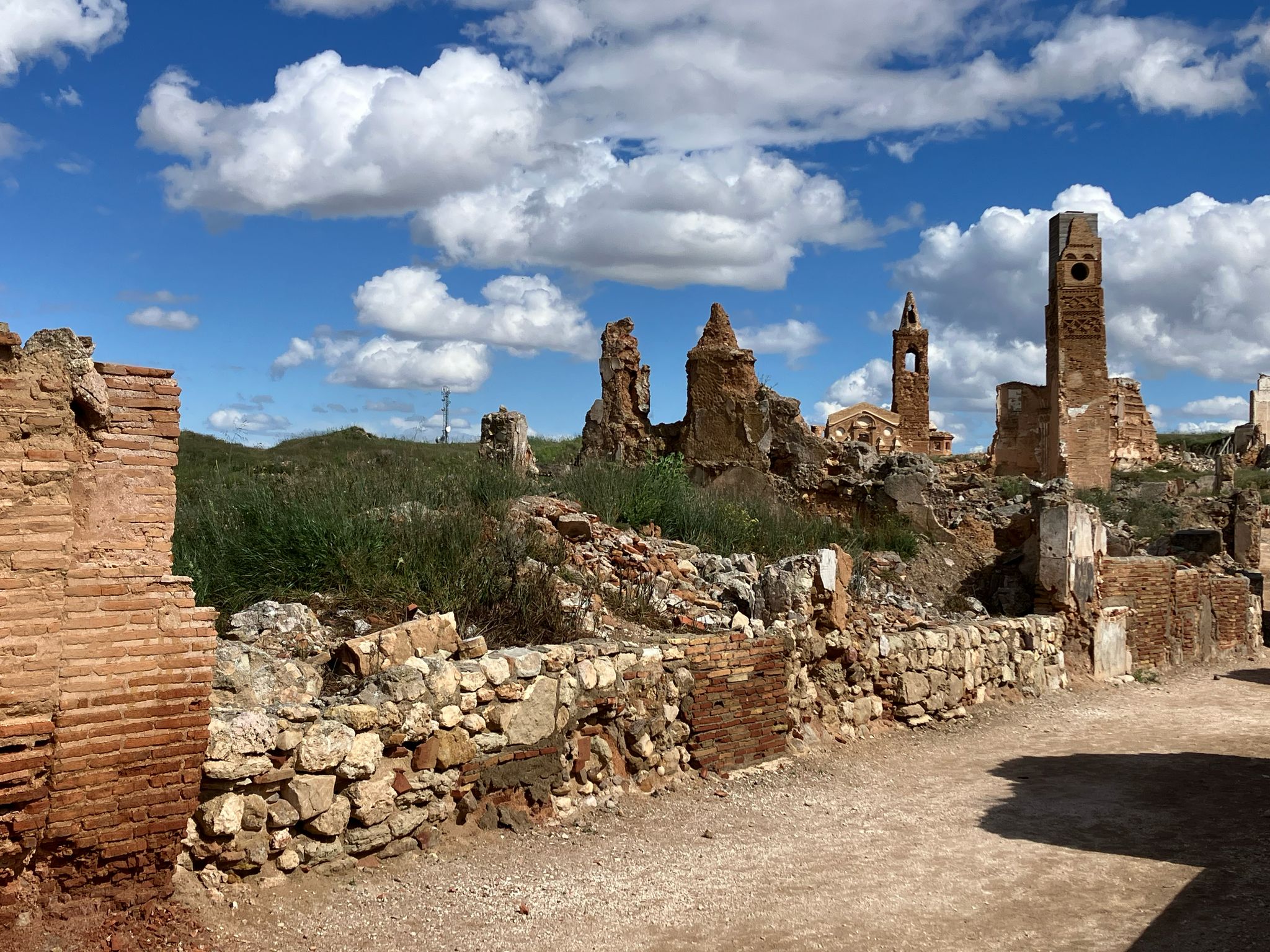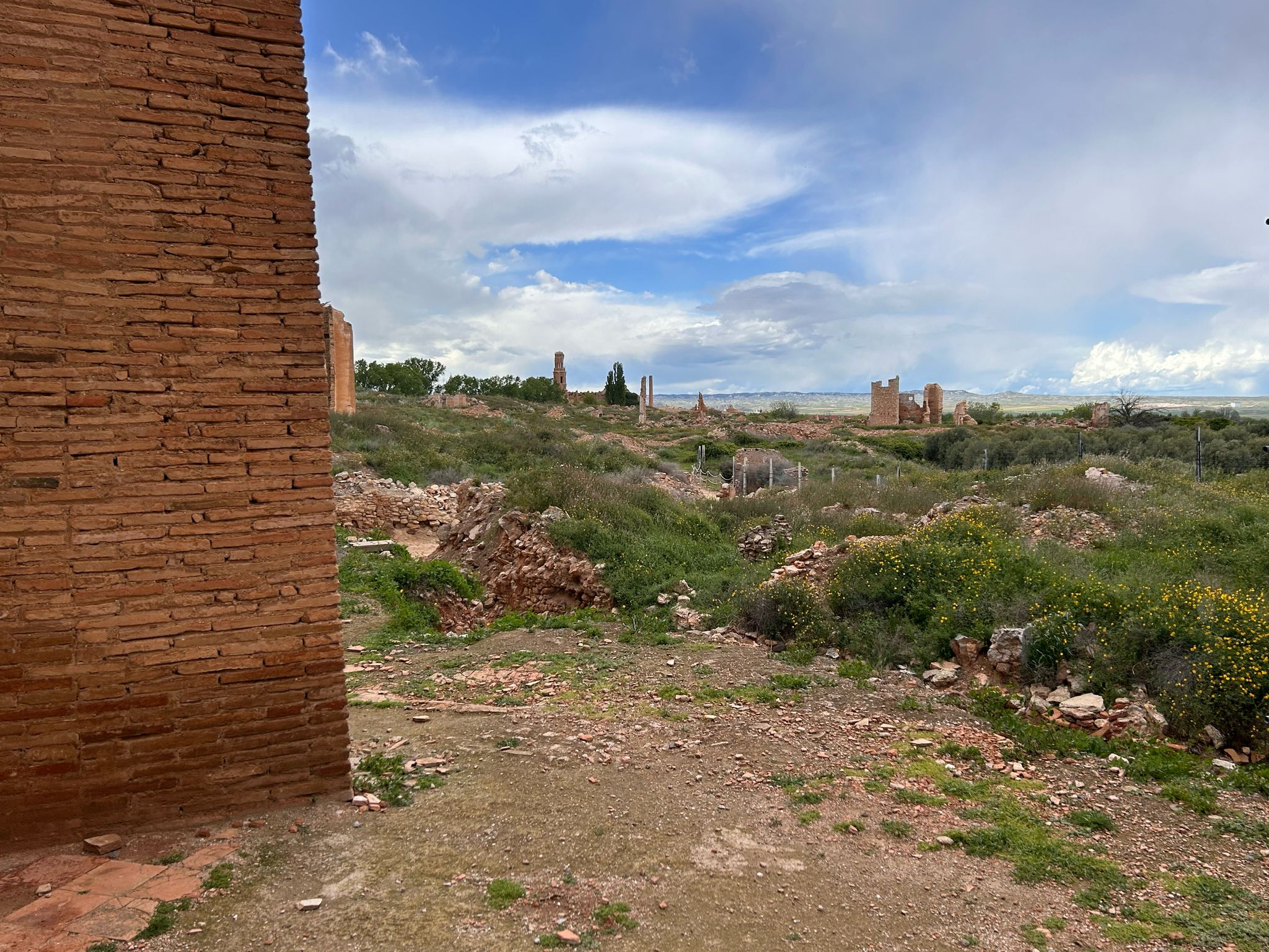 We sloten de dag met zon of op een plek die de verdoemenis van een burgeroorlog laat zien: Belchite, de Catalaanse evenknie van Guernica dat bijna 3 jaar stand hield tegen de aanvallen van Franco maar uiteindelijk toch viel. Franco gebood dat het niet mocht worden opgeruimd of hersteld. Het laat nu zien hoe verwoestend oorlog is. Letterlijk. Belchite ligt in een zeer droog gebied waardoor de ruines er nog zo bij staan, pas de laatste 20 jaar wordt er herstelwerk gedaan.