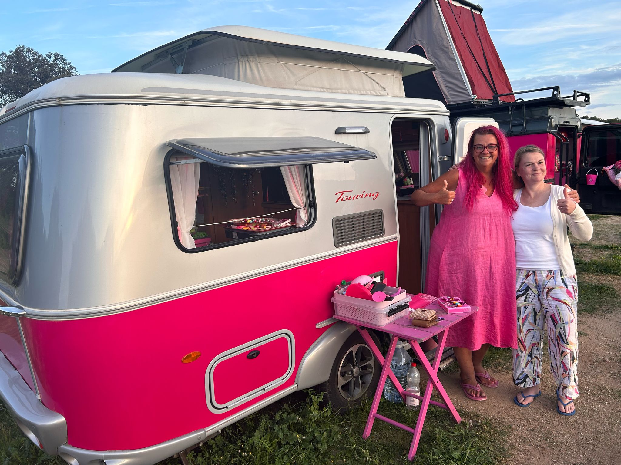 Daar vonden we een mooie relaxte camping met paarden, kippen en geiten. En Sannah met haar roze Land Rover en caravan, en voor de rest ook alles roze trouwens. Ze was de lange winters in Finland zat en heeft deze winter eens gekeken of ze een wintertour met haar ceramic jewelry kan maken. Dat is gelukt.